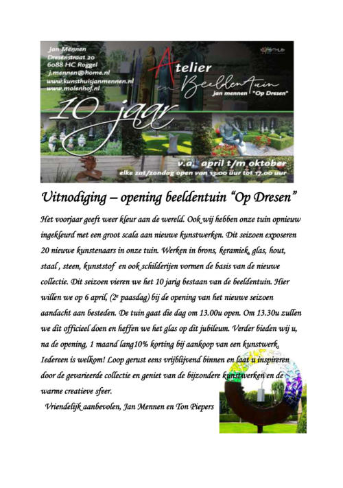Nieuws opening beeldentuin